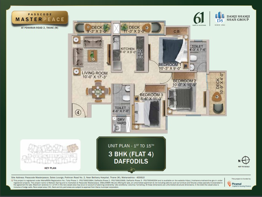 | 3 BHK with Balcony | 1100 Sq.ft.(Carpet Area) |